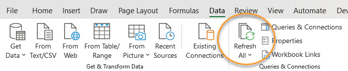To refresh a locally saved Connected Excel file, open the file and go to the Data > Queries and Connections then click Refresh All to refresh.